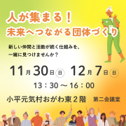 会員が高齢化している、新規入会が少ない、若い人が入らない、人が足りない… 講座では、新しい人が入会し継続して活動するまでの流れや、そのためには何をしたらいいかを考えます。協働のまちづくりや地域の人材育成、NPO支援に長らく従事してきた講師が、2回の講座で解決の糸口(ヒント)をお話します。 申し込みは11月5日(水)~22日(土)の期間に下記フォームよりお申し込みください。 https://forms.gle/5geadzY8xz25EfQ56