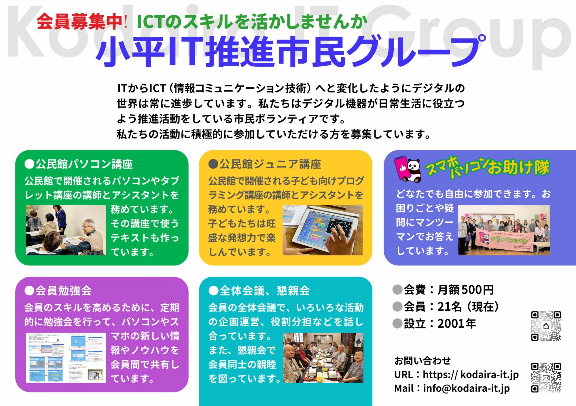 シニア世代が進化するICT社会に対応できるよう勉強し合い、子ども達の育成や豊かな社会環境作りを目指す