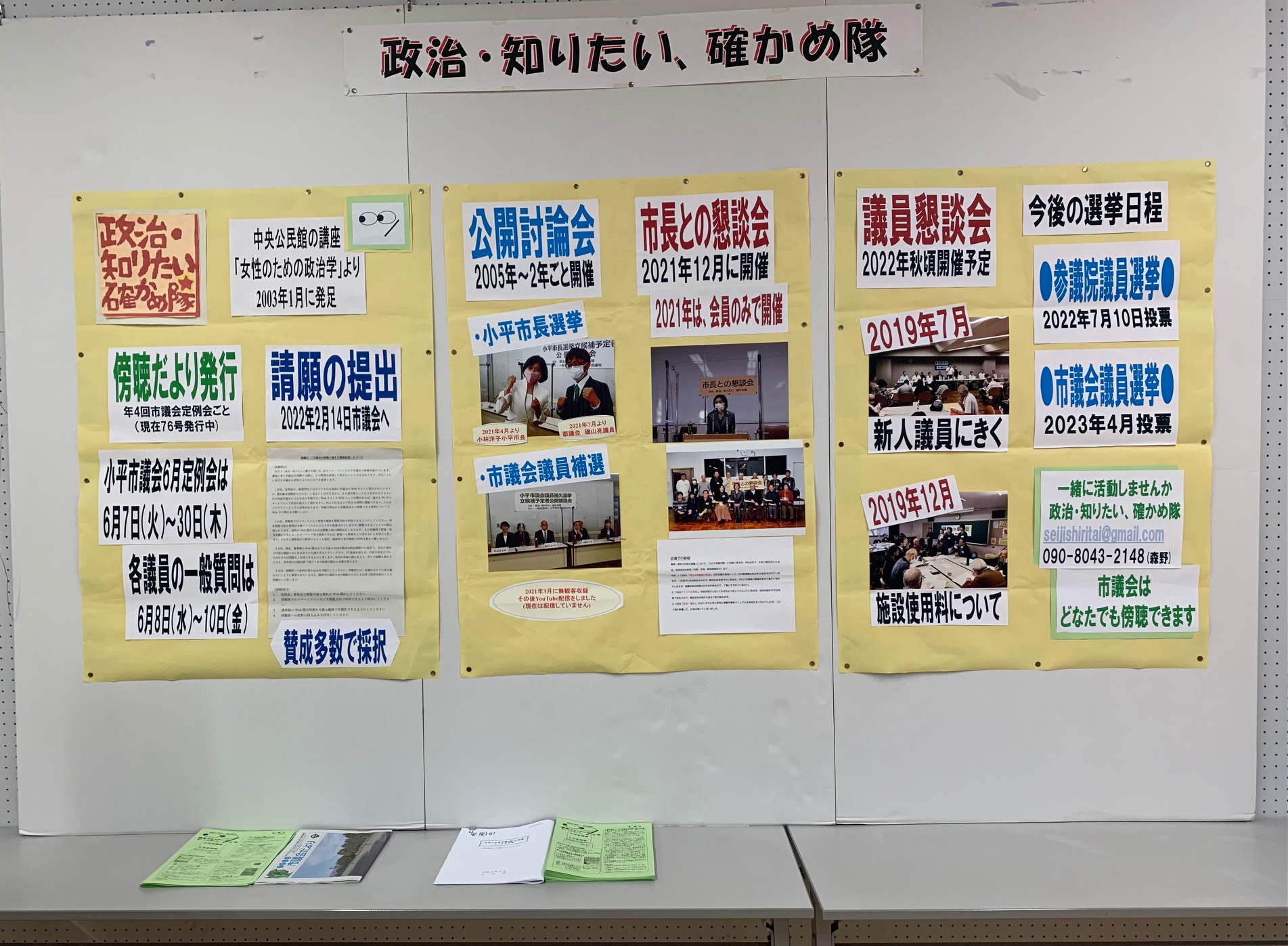 中央公民館の講座「女性のための政治学」から発足。小平市議会を傍聴し、傍聴だよりを発行しています。
