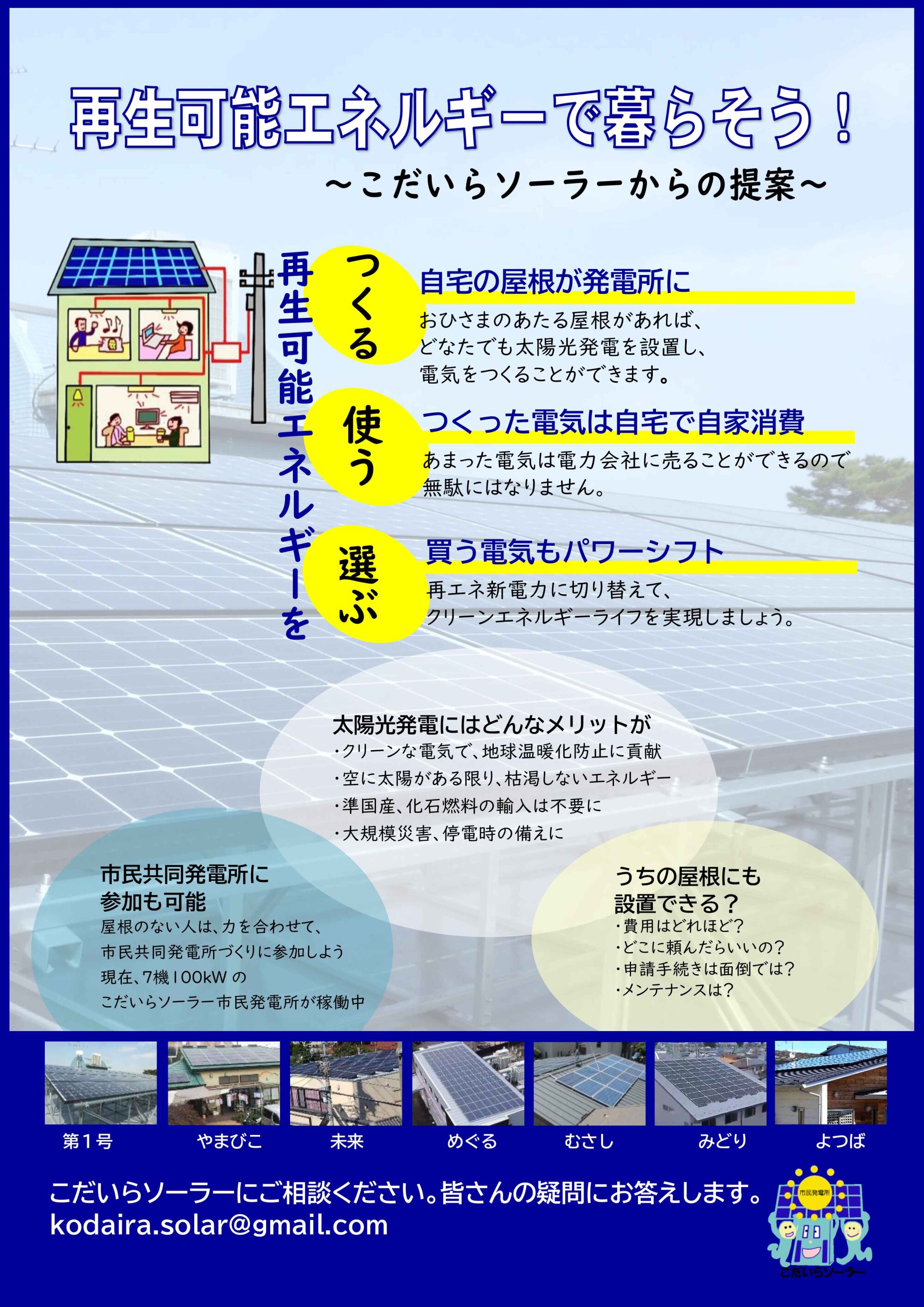 ご自宅にソーラーを設置、または市民発電所づくりに参加して、再エネで暮らす未来を一緒につくりましょう。