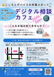 パソコン、スマホなどのデジタル機器について くつろぎながらカフェスペースで相談できます。 お菓子ドリンク付き(セルフ) 参加費: 500円 お問合せやお申し込み↓↓ info.itsckodaira@gmail.com