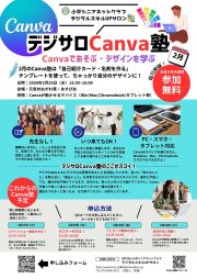 テンプレートを使って、ちゃっかり自分のデザインに♡ 講師はいません。一人一人が先生であり、生徒です。 みんなで教え合う内、、自然と上達まちがいなし! ドラッグ&ドロップできたら、もう先生ですよ〜 デジサロCanva塾【2月】 対象: だれでも(Canva初心者、大歓迎!) 日時: 2月25日(水) 13:30 〜 16:00 場所: あすぴあ会議室 持ち物: Canvaが使えるパソコン、またはタブレット(スマホでも可) 参加費: 無料 お申し込み: QRコードから、またはメールでお知らせください。